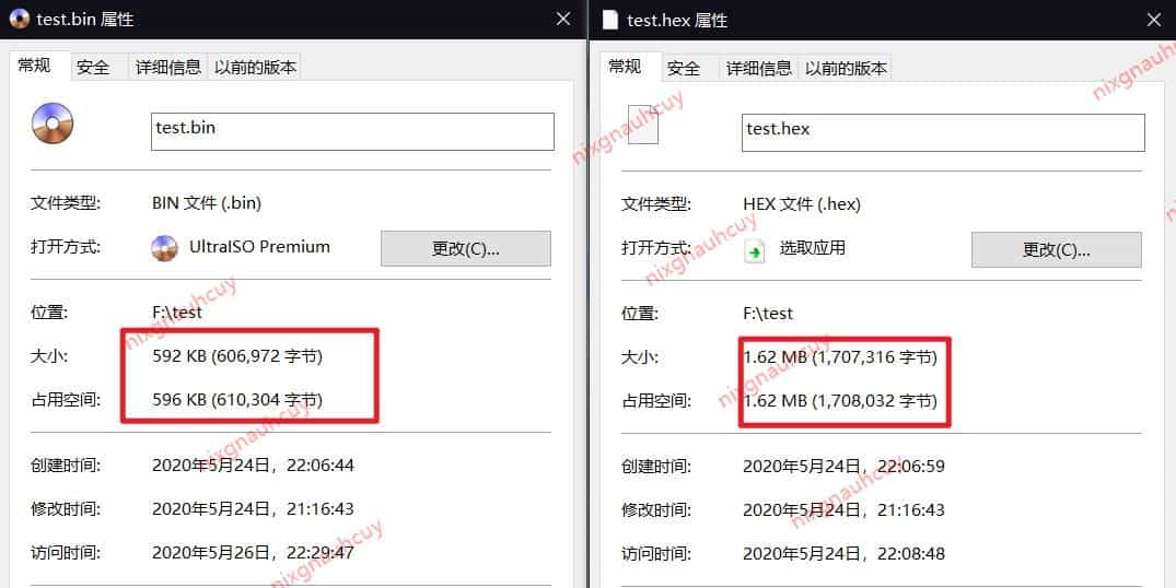 可以看到生成的 test_out.bin 和 keil 生成的 test.bin 文件大小一致。