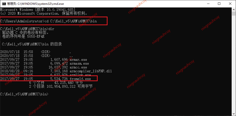 win+R 打开运行,输入 cmd 打开运行,进入 fromelf.exe 路径
