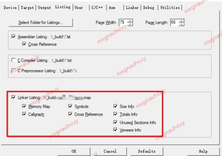 在Keil中,我们在 Project -> Options for Target -> Listing 中可以看到我们生成的map中链接的内容,
