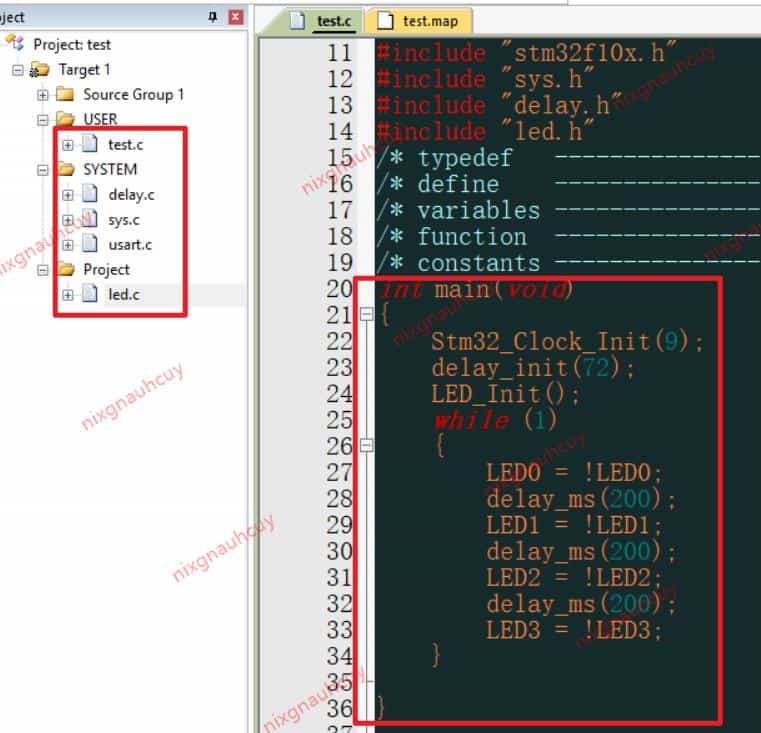 这里我随便找了个简单的LED延时闪灯程序,编译后打开生成的 map 文件
