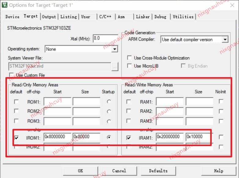 对应Keil中设定的IROM1和IRAM1: