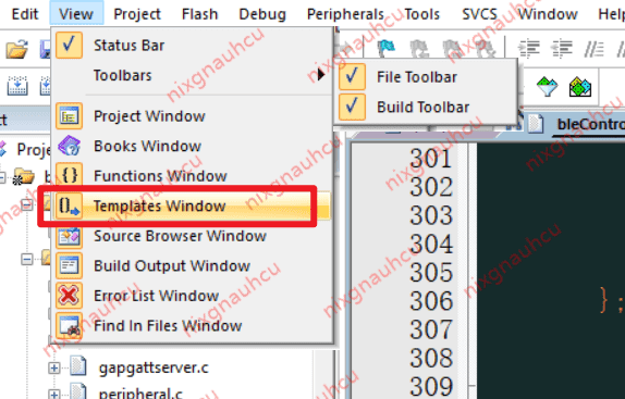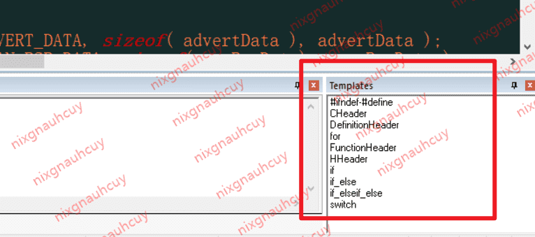 我们在 Keil 的菜单栏中找到 View-Templates Window ,将它勾选,就会有相应的 Templates 窗口,根据自己方便拖到一个适合的地方,这里我拖到了我右下角来使用它。
