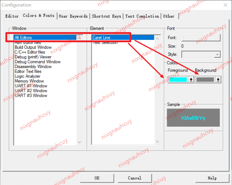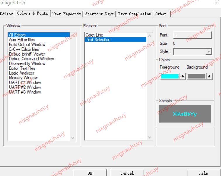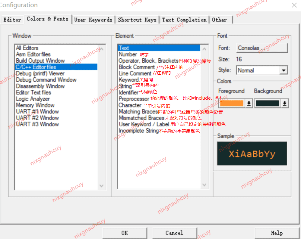 这个是关于 Keil 字体大小、颜色,背景色等字体和颜色的配置。