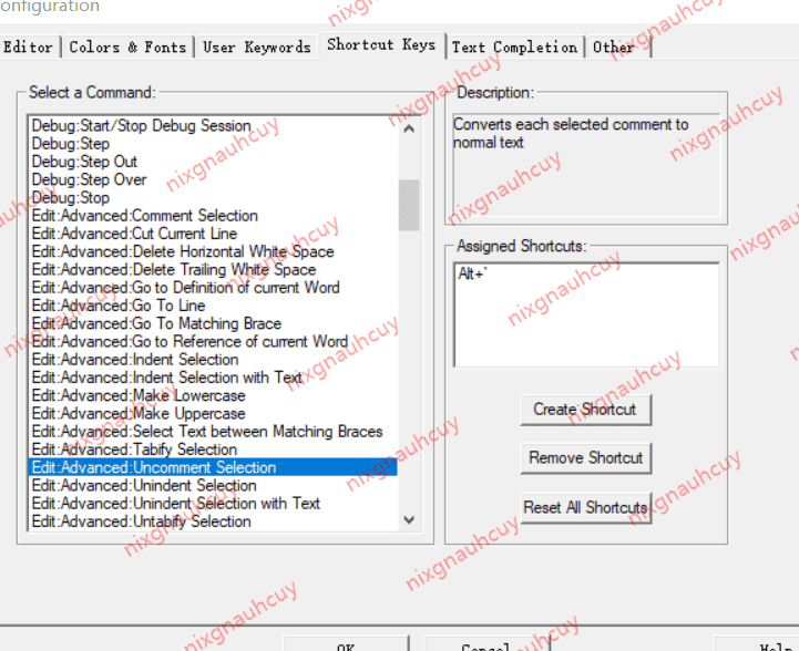 Shortcut Keys 可以用来修改快捷键,这里其实默认设置就可以了,绝大多数的快捷键符合我们的使用。我这里稍微修改了一些快捷键,如: