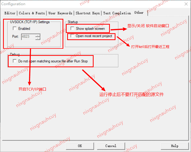 Encoding: 这里是设置我们的 Keil 的编码,一般我们选择默认的 Dncode in ANSI 就可以了,但是如果你打开别人的工程,看到注释乱码,很大情况都是编码问题,这个时候修改你的编码为 Chinese GB2312(Simplified) 可以解决乱码的问题,当然不一定所有乱码都是编码的问题。